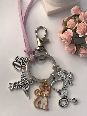 Porte-clés élégant thème infirmière, breloque tenue infirmière, cadeau pour femme infirmière, sage-femme, charms masque thermomètre