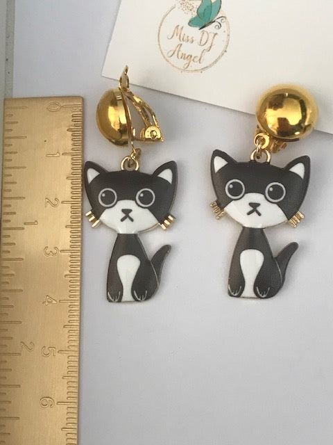Boucles d'oreille chats, clip oreille à chats, breloques chats noirs, cadeau pour femme chat, cadeau femme chaton fait main