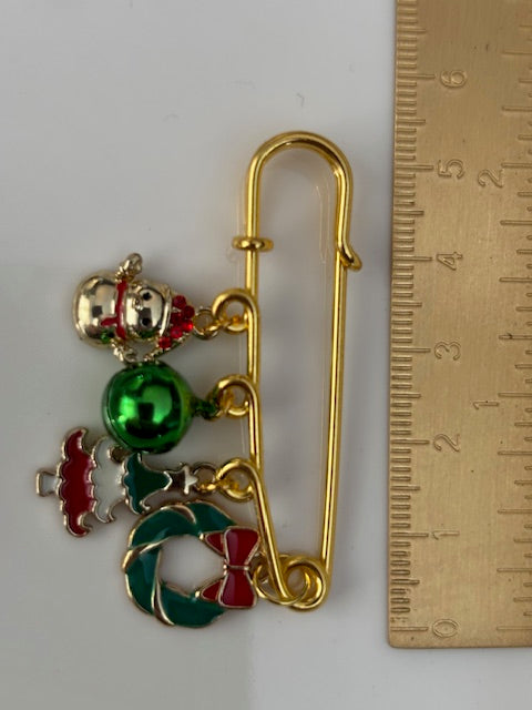 Broche Noël, broche sapin et grelot, broche breloques de Noël, pendentifs bonhomme de neige couronne de houx, cadeau Noël fait main