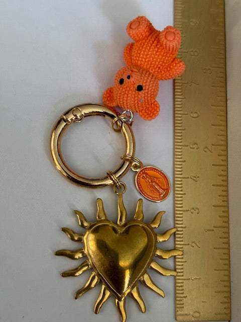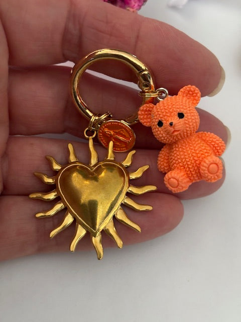 Charms soleil médaille religieuse, porte clé soleil ourson, cadeau pour maman ourson, cadeau femme cœur soleil, breloque médaille religieuse