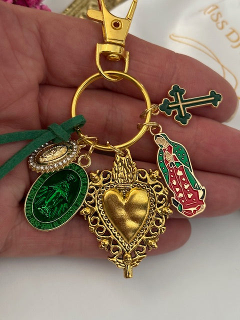 Porte-clés vierge Marie coeur sacré et croix, cadeau pour maman vierge, breloque vierge médaille miraculeuse, porte clé croix ex voto