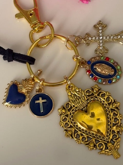 Porte-clés vierge Marie coeur sacré et croix, cadeau pour maman vierge, breloque vierge médaille miraculeuse, porte clés ex voto