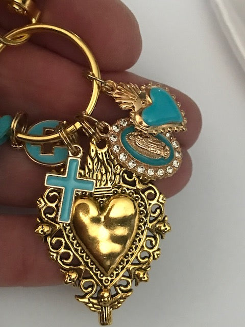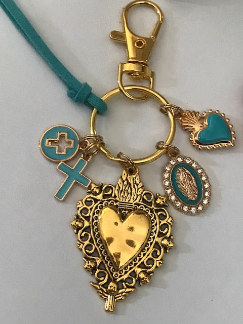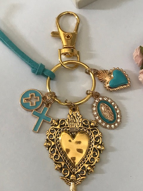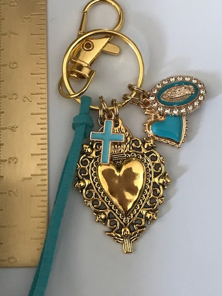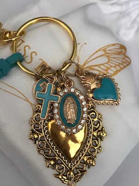 Porte-clés vierge Marie coeur sacré et croix, cadeau pour maman vierge, breloque vierge médaille miraculeuse, porte clés ex voto