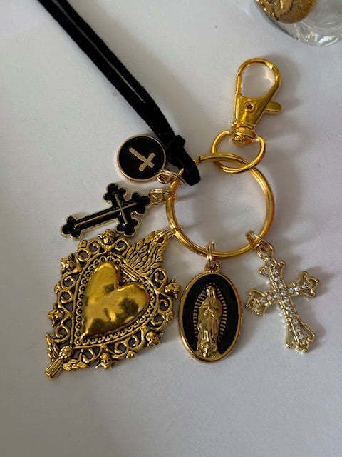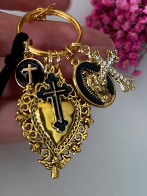 Porte-clés vierge Marie coeur sacré et croix, cadeau pour maman vierge, breloque vierge médaille miraculeuse, porte clés ex voto